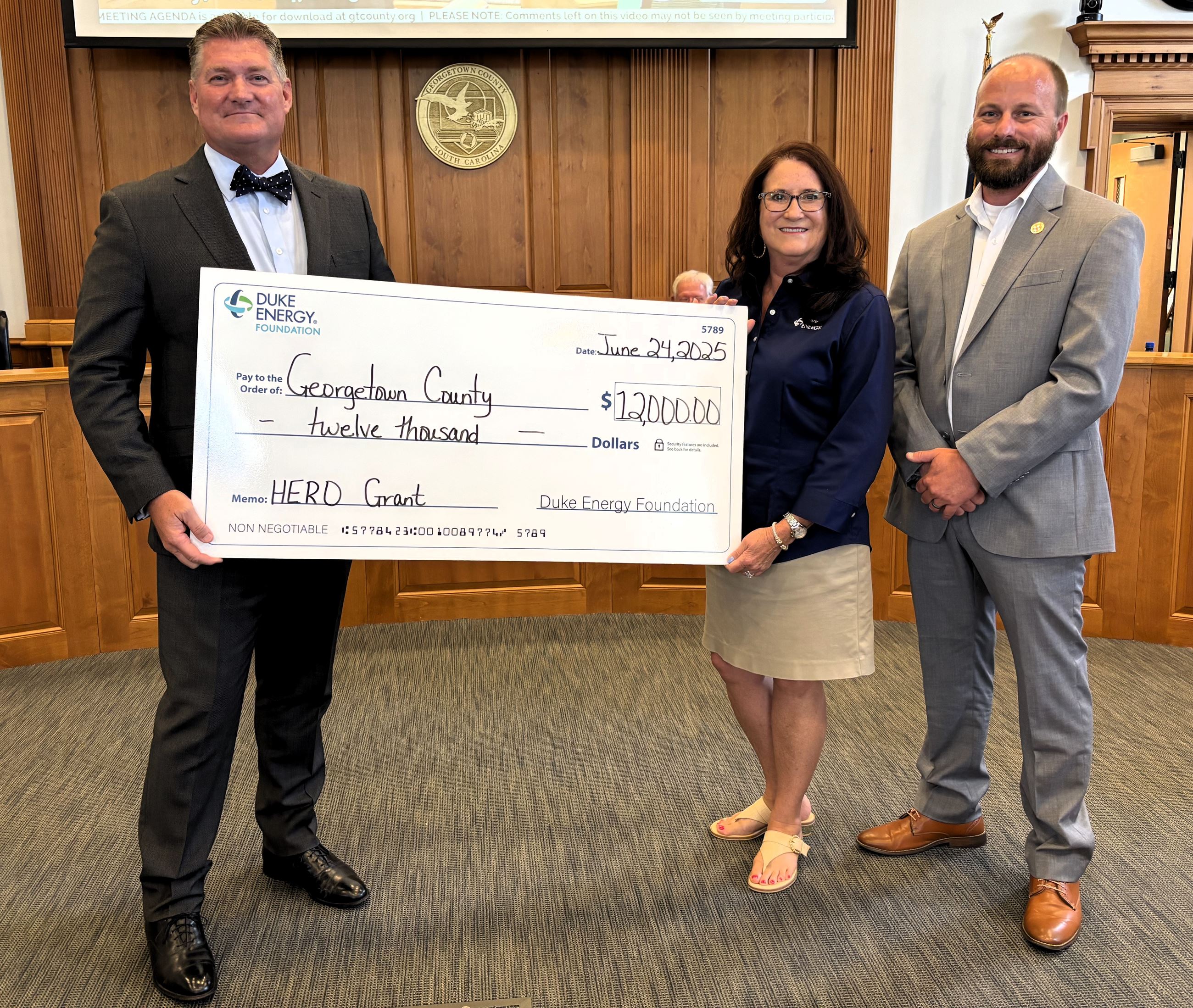 Georgetown County has been awarded a $12,000 grant from the Duke Energy Foundation’s 2025 Helping Emergency Response Organizations (HERO) Grant Program to improve emergency communications and disaster preparedness.