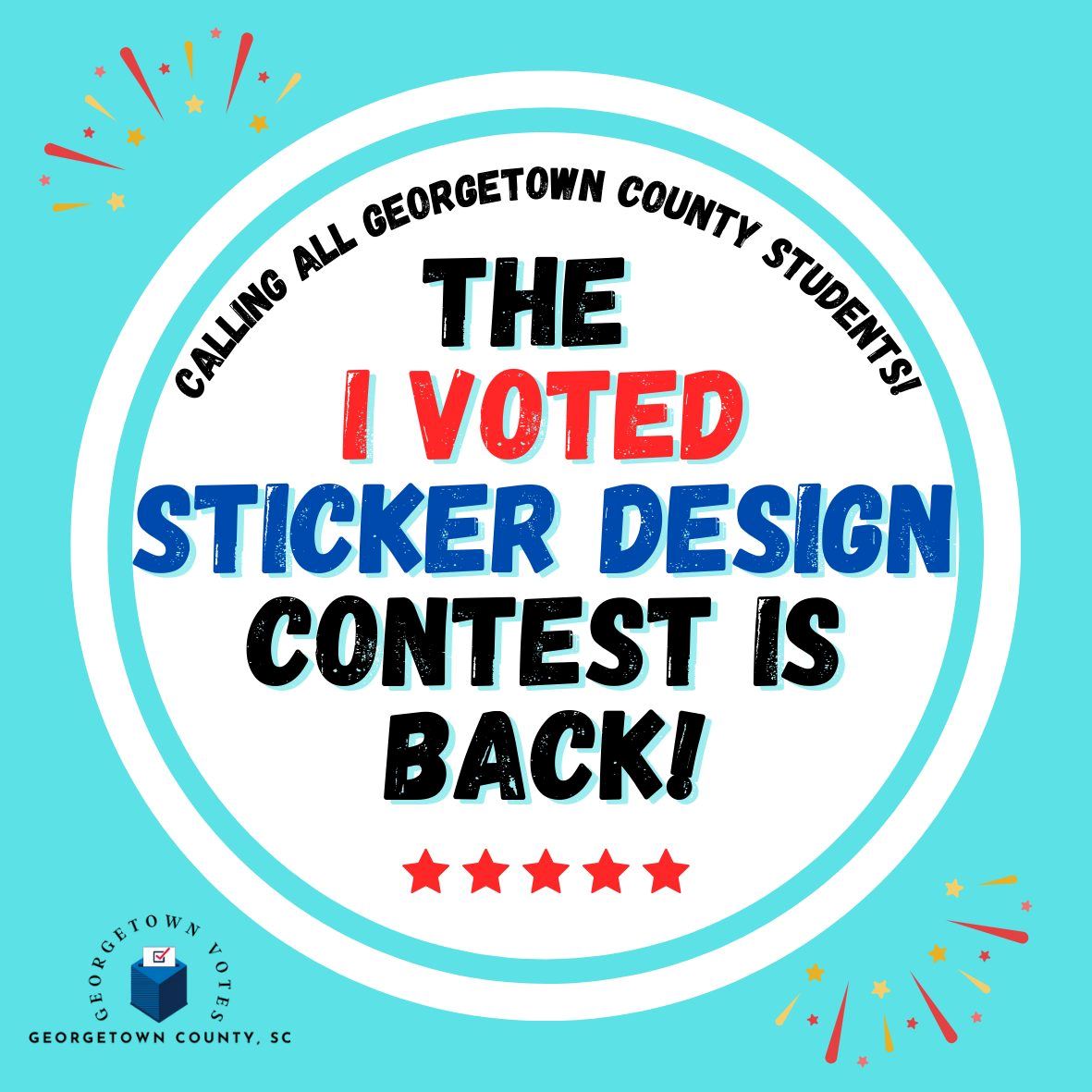 Georgetown County Voter Registration and Elections is excited to announce the launch of its third annual “I Voted” Sticker Design Contest. It is open to all school age children and teens in Georgetown County. Submissions are open and will be accepted until 5 p.m. on Friday, Oct. 10.