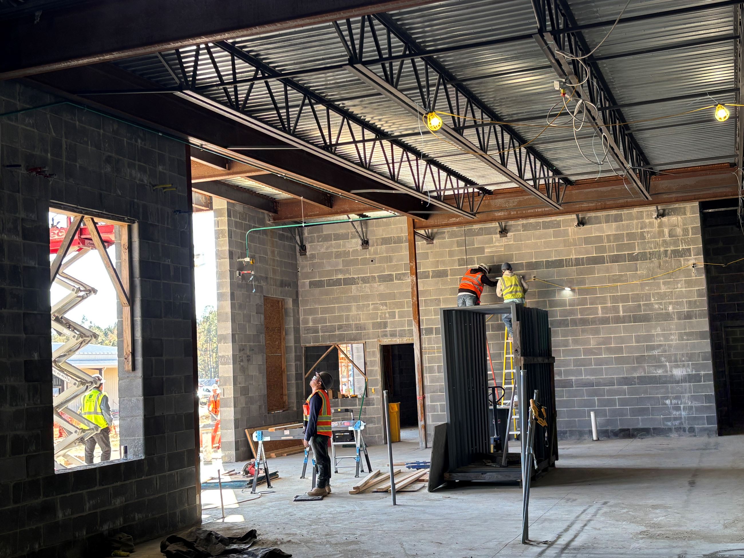 Construction of Georgetown County’s new $65 million detention center on Browns Ferry Road is progressing steadily, with walls already up, and wiring and plumbing being installed. Block works is about 75 percent done and metal studs are currently being installed inside the structure.