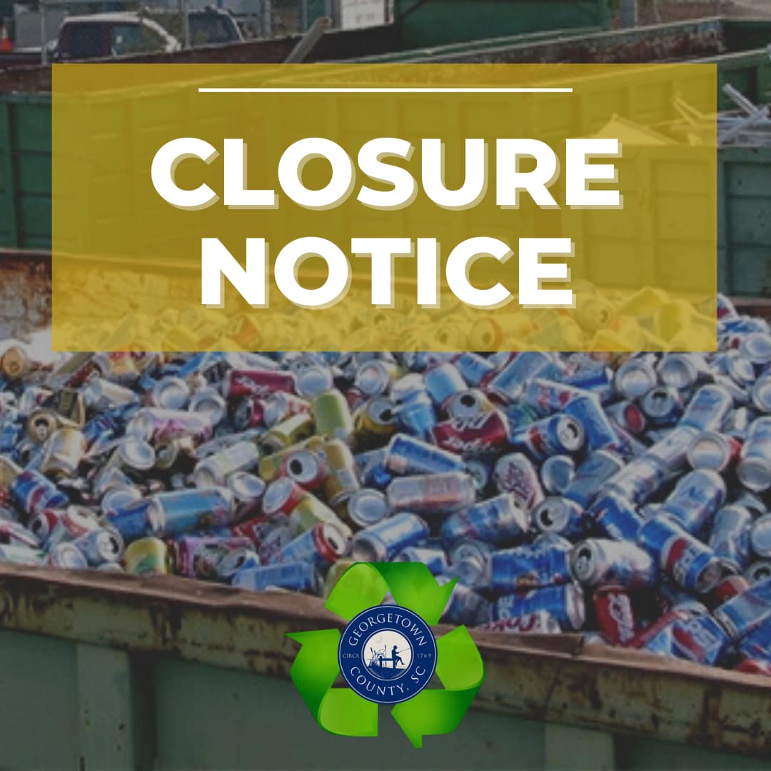 All Georgetown County recycling convenience centers will be closed Friday, Sept. 27, as most are without electricity. Georgetown County is working to resolve the issue as quickly as possible. Updates on reopening will be provided as electricity is restored.