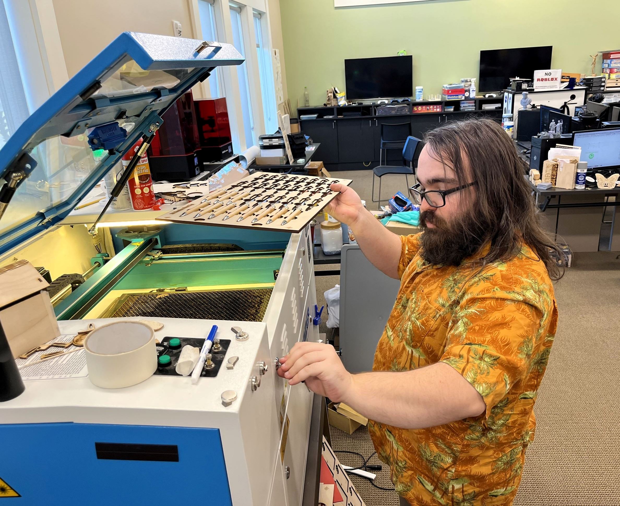 Throughout the weekend, library staff will demonstrate new and traditional crafting technologies, including foam cutting, laser engraving and patch-making for hats. Visitors will also be able to try their hand at engraving keychains, slate coasters and glassware using the library’s new and upgraded laser equipment.
