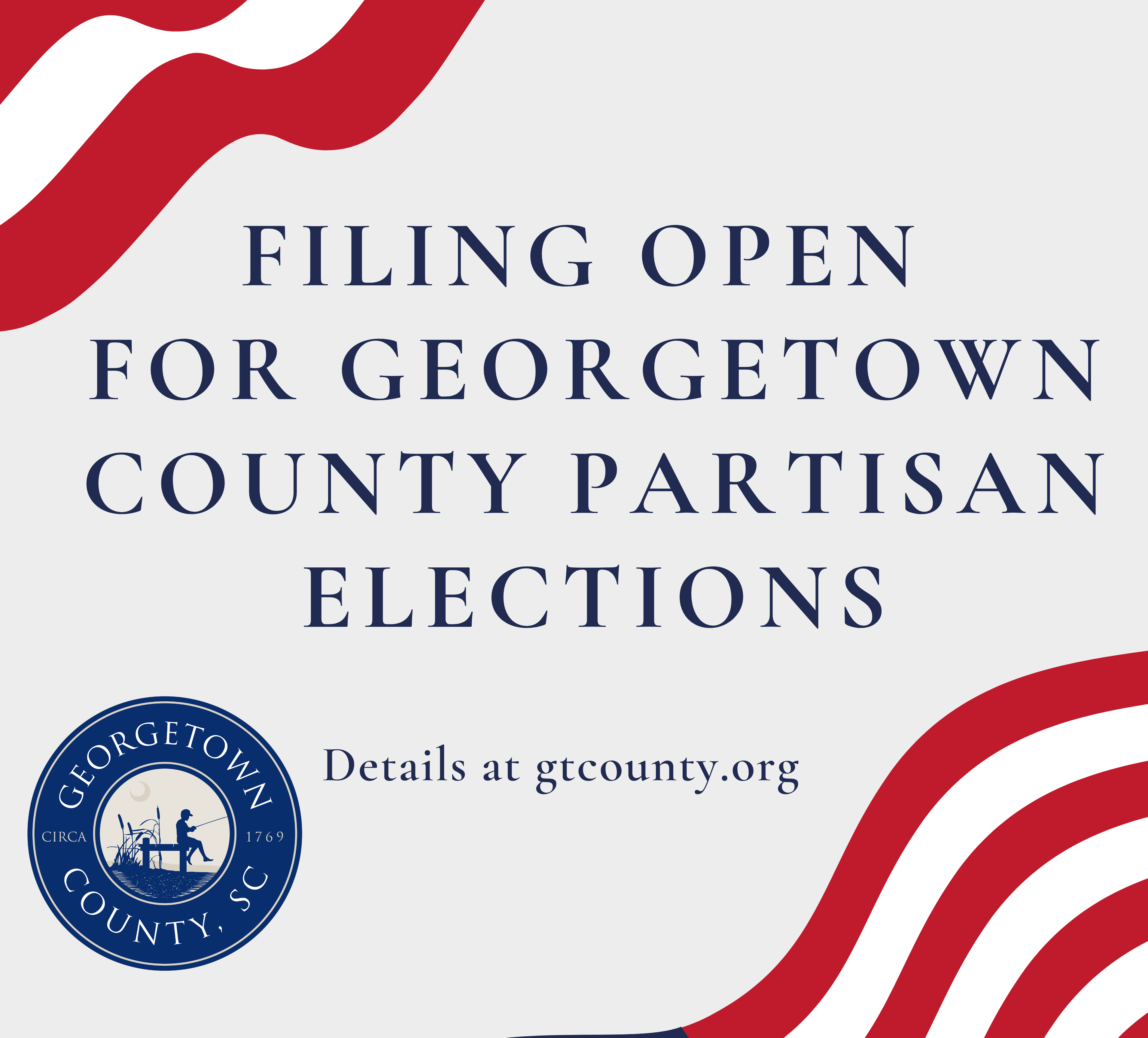 Candidates interested in running for partisan offices have a two-week window to file. The filing period opened March 16 at noon and closes March 30 at noon. Contact the Elections Office at 843-545-3339 for information on how to file or visit our Upcoming Elections page