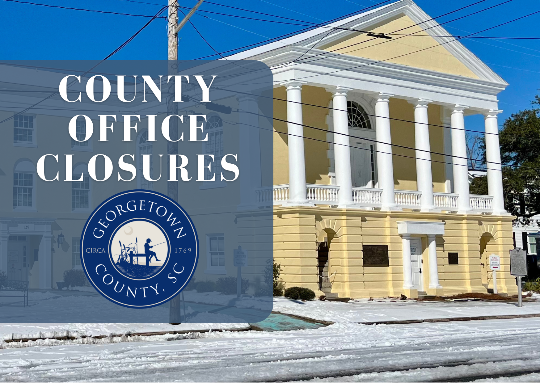 All Georgetown County offices and facilities, including the landfill and recycling centers, will be closed on Monday, February 2 due to after-effects from Winter Storm Gianna.