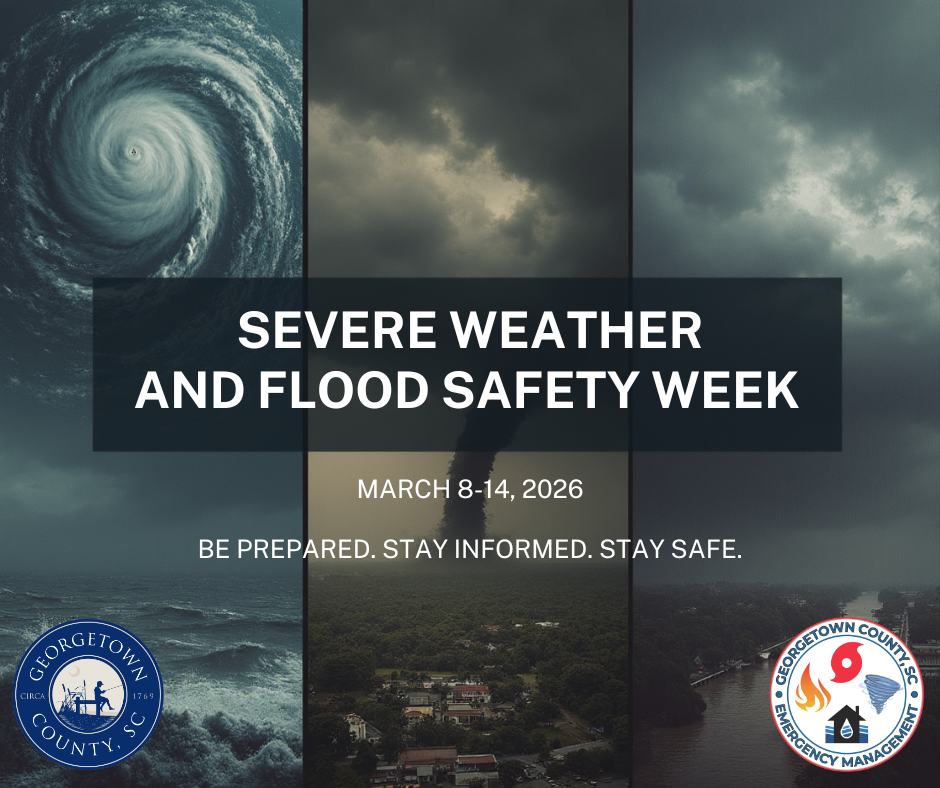 Georgetown County Emergency Management will join the S.C. Emergency Management Division, the National Weather Service and the S.C. Department of Natural Resources in observing Severe Weather and Flood Safety Week, March 8-14, as designated by Gov. Henry McMaster.